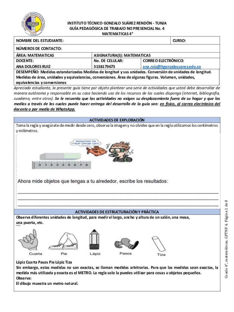 INSTITUTE TCN ICO GONZALO SURE REND TUNJA GUA PEDAGOGICAL DE TRIBAL NO PRESENCE No. 4 MATHEMATICAL 4 HOMBRE DEL ESTUDIANTE:CURSE:NUMEROUS DE CONTACT: REA: MATHEMATICAL SIGNATURE’S): MATHEMATICAL
