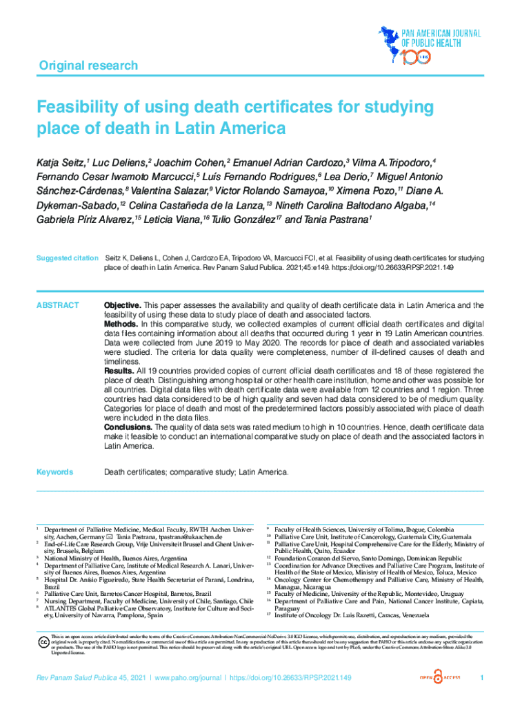 Get the free Feasibility of using death certificates for studying place ... - IRIS PAHO