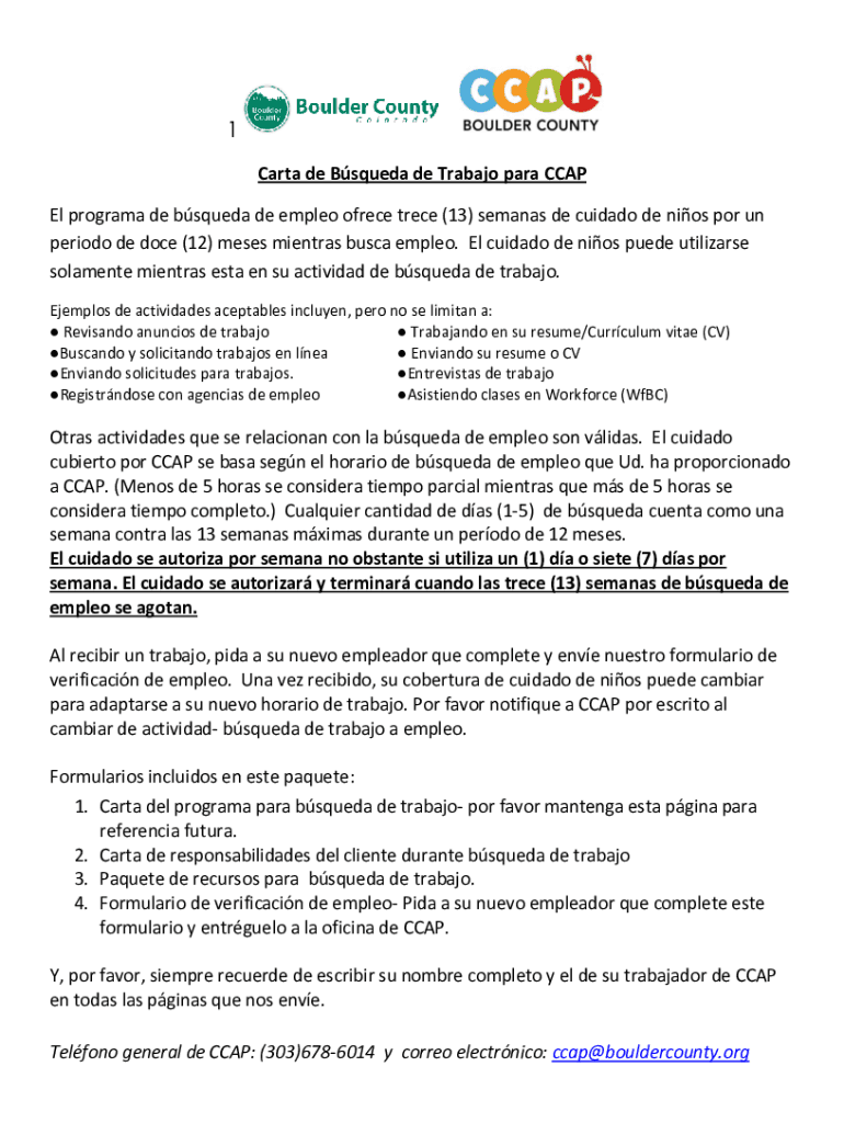 Get the free Carta de Bsqueda de Trabajo para CCAP - Boulder County