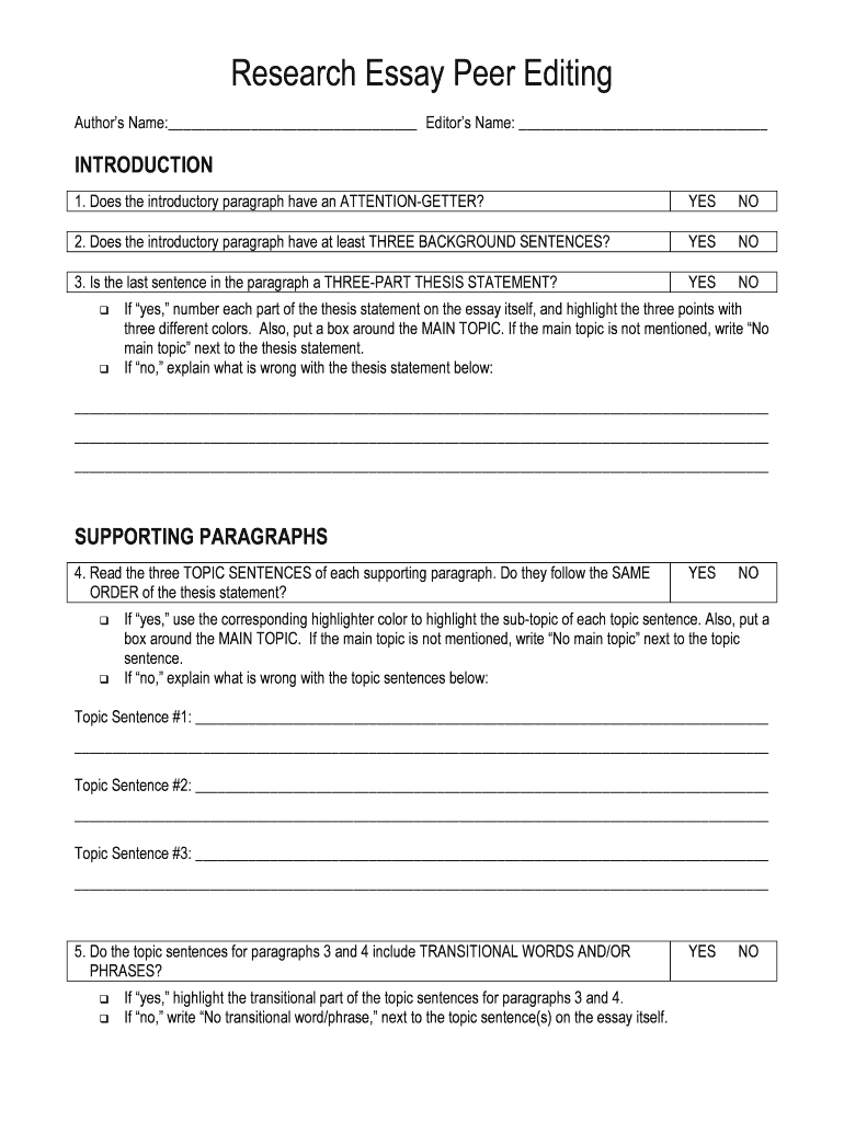 How to fill out research essay peer editing?
