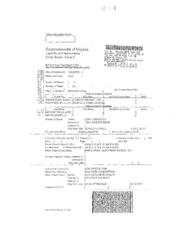 /[event Control Number IIIIIIMilmII11mIll11111111111×11llmtiWlml×111JillCommonwealth of V IGI n dockland Record instruments Cove r SheetFormA (ILS VU\'LC 0X Rate of Instrument:[10×1212005[Decree