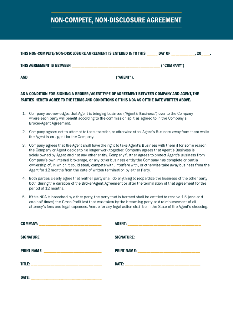COMPETE, NONDISCLOSURE AGREEMENTS COMPETE×NONDISCLOSURE AGREEMENT IS ENTERED IN TO THIS ___ DAY OF ___, 20___. THIS AGREEMENT IS BETWEEN ___ (COMPANY) AND___ (AGENT×.AS A CONDITION FOR SIGNING A
