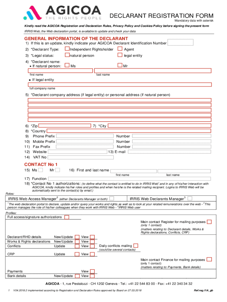 ALICIA DECLARING REGISTRATION FORM DECLARING REGISTRATION FORM Mandatory data with asterisk Kindly read the ALICIA Registration and Declaration Rules, Privacy Policy and Cookies Policy before signing