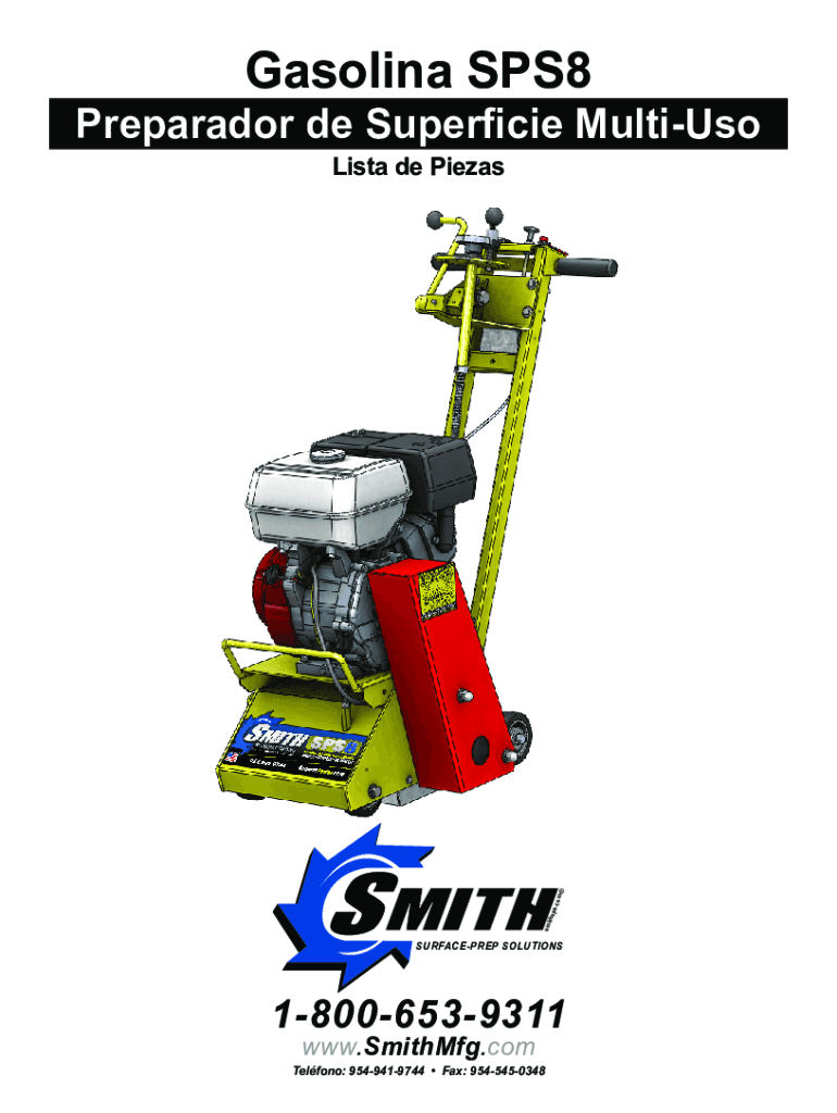 Gasoline SPS8Preparador de Superficie Multiuse List de Piezassmithsps.comSURFACEPREP SOLUTIONS18006539311 www.SmithMfg.comTelfono: 9549419744 Fax: 9545450348SPS8MACHINE SAFETY AND WARNING LABELSGasolinaNDICE