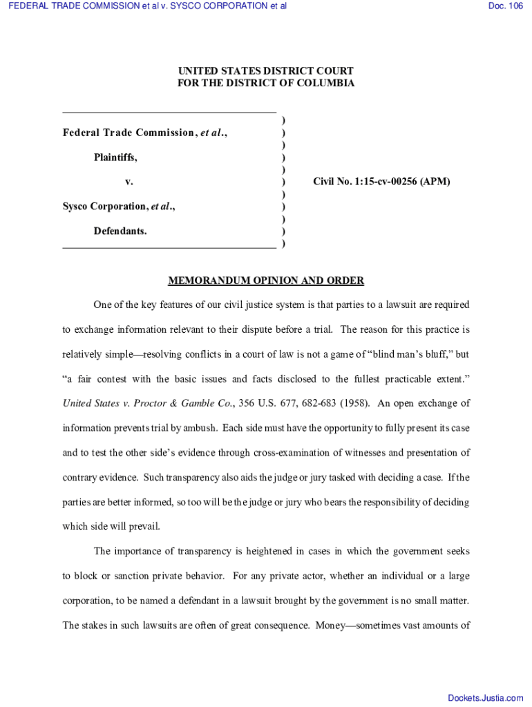 Get the free law.justia.comcasesfederalFEDERAL TRADE COMMISSION et al v. SYSCO CORPORATION et al,...