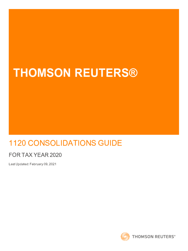 THOMSON REUTERS1120 CONSOLIDATIONS GUIDE FOR TAX YEAR 2020 Last Updated: February 09, 2021COPYRIGHTNOTICE 20202021 Thomson Reuters×Tax accounting. All rights reserved. Republication or redistribution