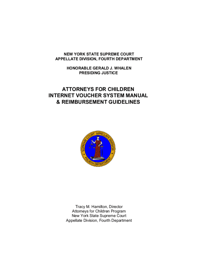 NEW YORK STATE SUPREME COURT APPELLATE DIVISION, FOURTH DEPARTMENT HONORABLE GERALD J. WHALE PRESIDING JUSTICEATTORNEYS FOR CHILDREN INTERNET VOUCHER SYSTEM MANUAL & REIMBURSEMENT GUIDELINES Tracy