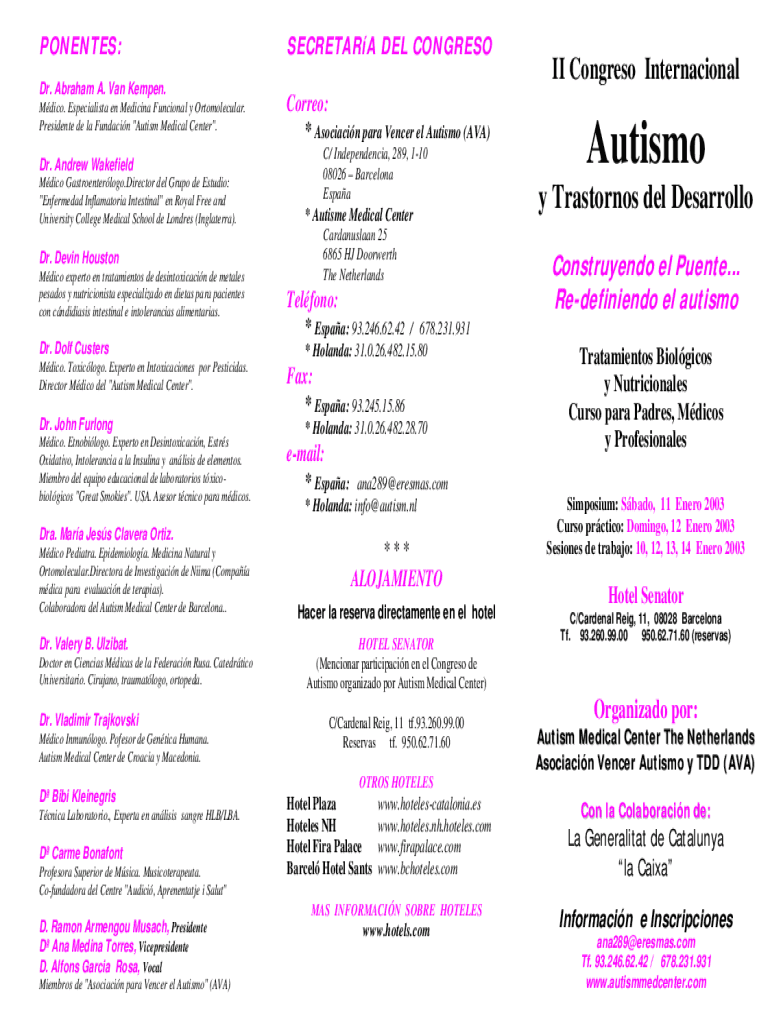 PONTES: Dr. Abraham A. Van Hempen. Medico. Specialist en Medicine Functional y Biomolecular. President de la Foundation \” Autism Medical Center\”. Dr. Andrew Wakefield Medico Gastroenterology.
