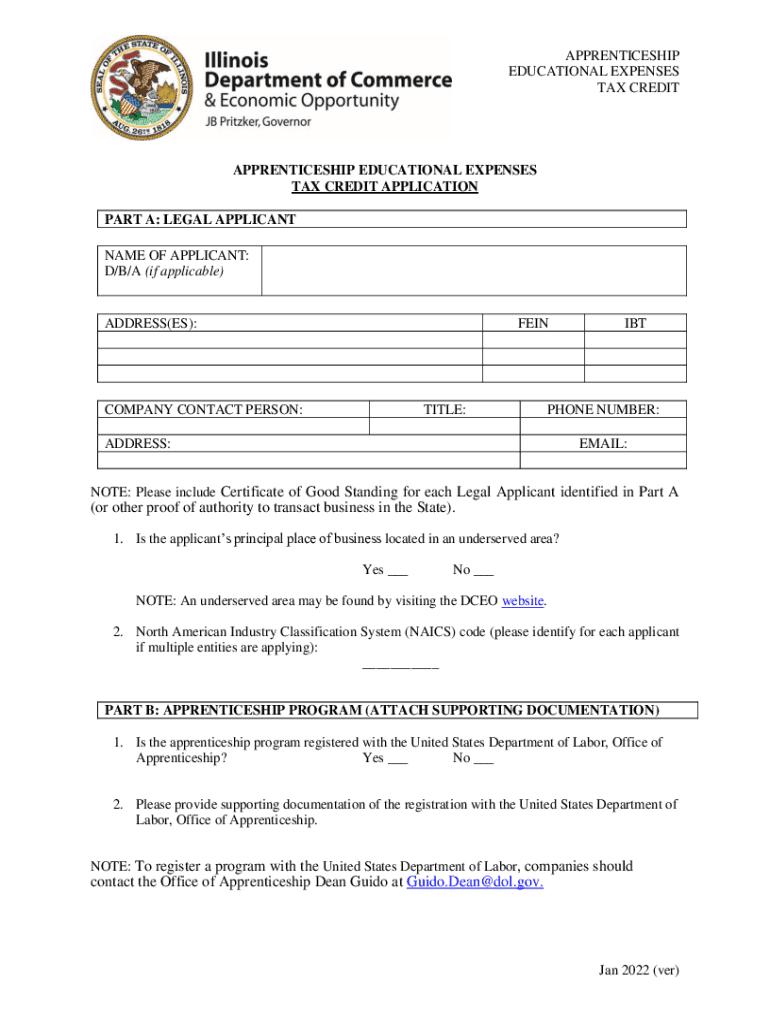 APPRENTICESHIP EDUCATIONAL EXPENSES TAX CREDITAPPRENTICESHIP EDUCATIONAL EXPENSES TAX CREDIT APPLICATION PART A: LEGAL APPLICANT NAME OF APPLICANT: D/B/A (if applicable)ADDRESS(ES):FEINCOMPANY CONTACT