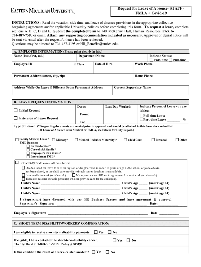 Get the free Request for Leave of Absence (STAFF) FMLA + Covid-19
