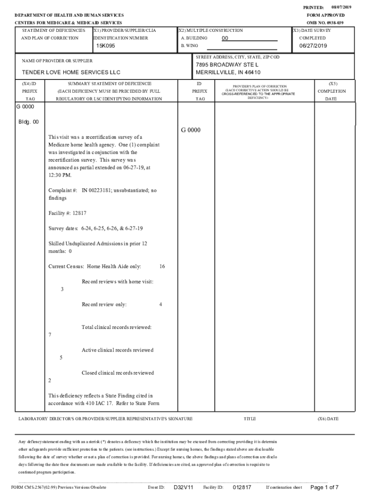 08×07/2019PRINTED: DEPARTMENT OF HEALTH AND HUMAN SERVICESFORM APPROVEDCENTERS FOR MEDICARE & MEDICAID SERVICES STATEMENT OF DEFICIENCIES×X1) PROVIDER×SUPPLIER×LIGAND PLAN OF CORRECTIONIDENTIFICATION