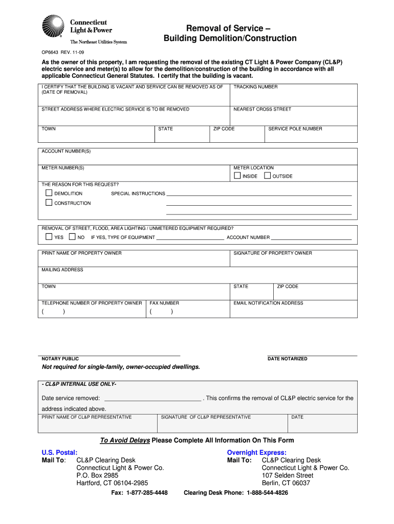 This form is essential for property owners in Connecticut who are planning any demolition or construction activities. It is particularly relevant when a removal request must be made to avoid unexpected service interruptions. CL&P representatives also rely on this form to proceed effectively with their duties.