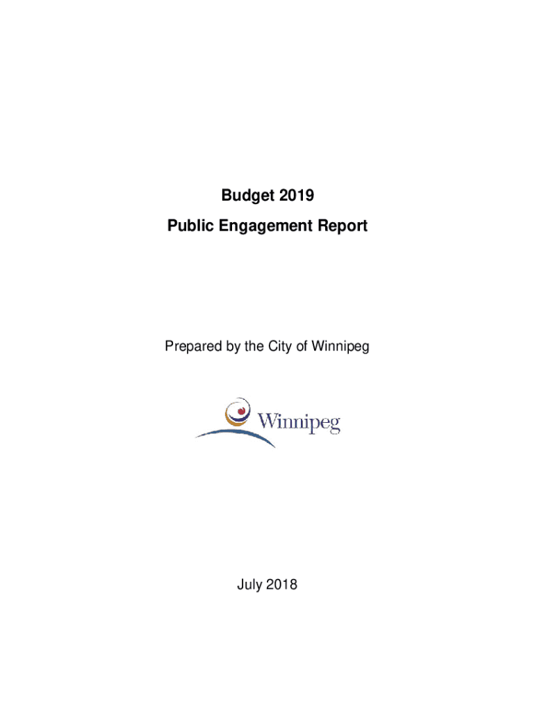 Budget 2019 Public Engagement ReportPrepared by the City of Winnipeg July 2018Table of Contents 1.0Introduction........................................................................................................................................