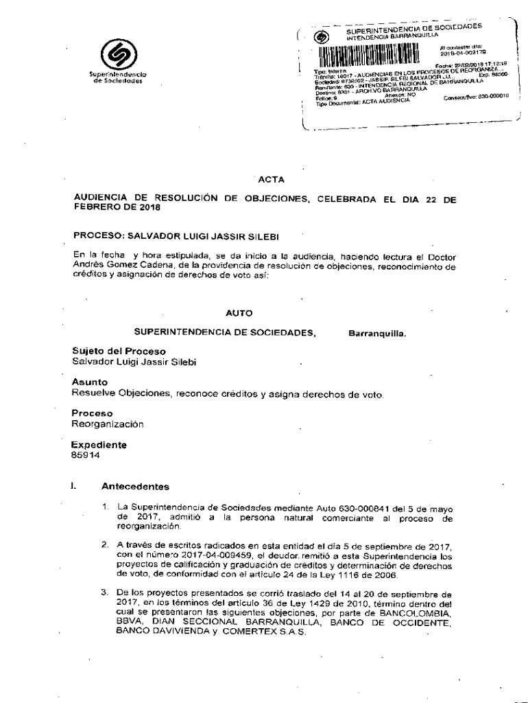 204 8.04.002179tTi: lnIfl8Superintendenciade Sociedades1FoR: 2o2l8 17:12:19TrkflltO 18017.AUDIENCES EN LOS PROCESS DE Reorganized.