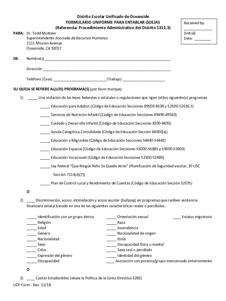 Get the free Procedimientos de la Queja Uniforme Formulario de ...