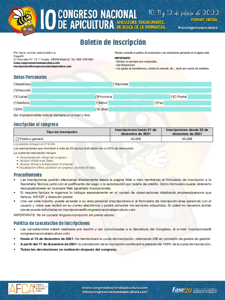 Get the free Boletn de Inscripcin - 10 CONGRESO NACIONAL DE ...