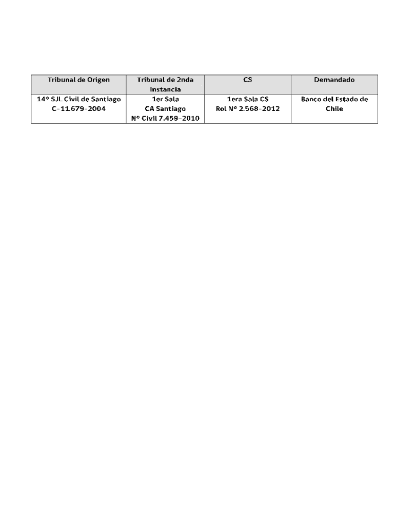NOMENCLATURE JURADO CAUSE ROL CARATULADO: 1. [40]Sentence : 14 Jurado Civil de Santiago : C116792004 : CORPORACIÓN NATIONAL/BANCO DEL Santiago, veintiocho de September de dos mil diezVISTOS: A Rojas