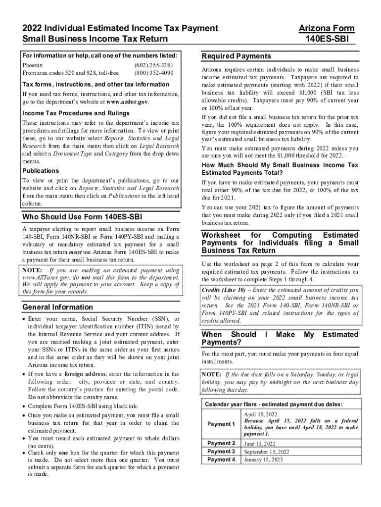 2022 Individual Estimated Income Tax Payment Small Business Income Tax Return For information or help, call one of the numbers listed: Phoenix From area codes 520 and 928, toll-free(602) 2553381 (800)