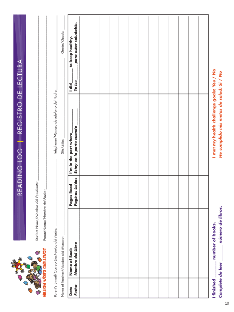 10I met my health challenge goals: Yes / No He complied MIS metal DE salad: Si / NOI finished ___ number of books. Complete DE leer ___ Nero de Libras._______________________________________Database