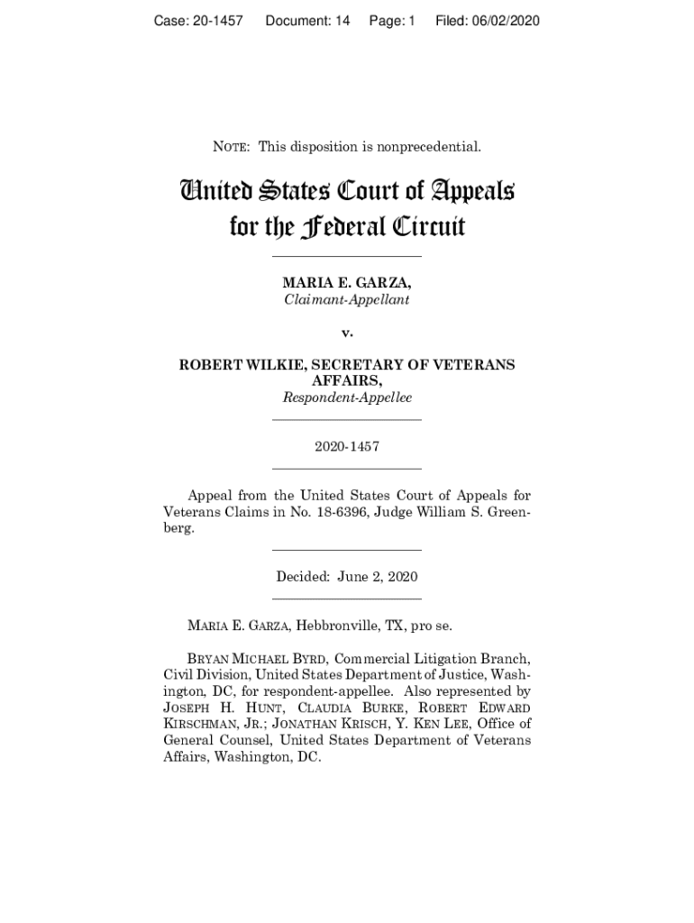 Case: 201457Document: 14Page: 1Filed: 06×02/2020NOTE: This disposition is nonresidential. United States Court of Appeals for the Federal Circuit ___ MARIA E. GARZA, ClaimantAppellant v. ROBERT WILKIE,
