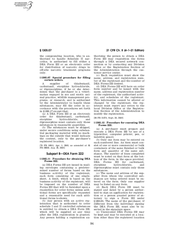 1305.0721 CFR Ch. II (4121 Edition) theorizing the person to obtain a DEA Form 222 may requisition the forms through a DEA secured network connection or by contacting any Division Office or the Registration