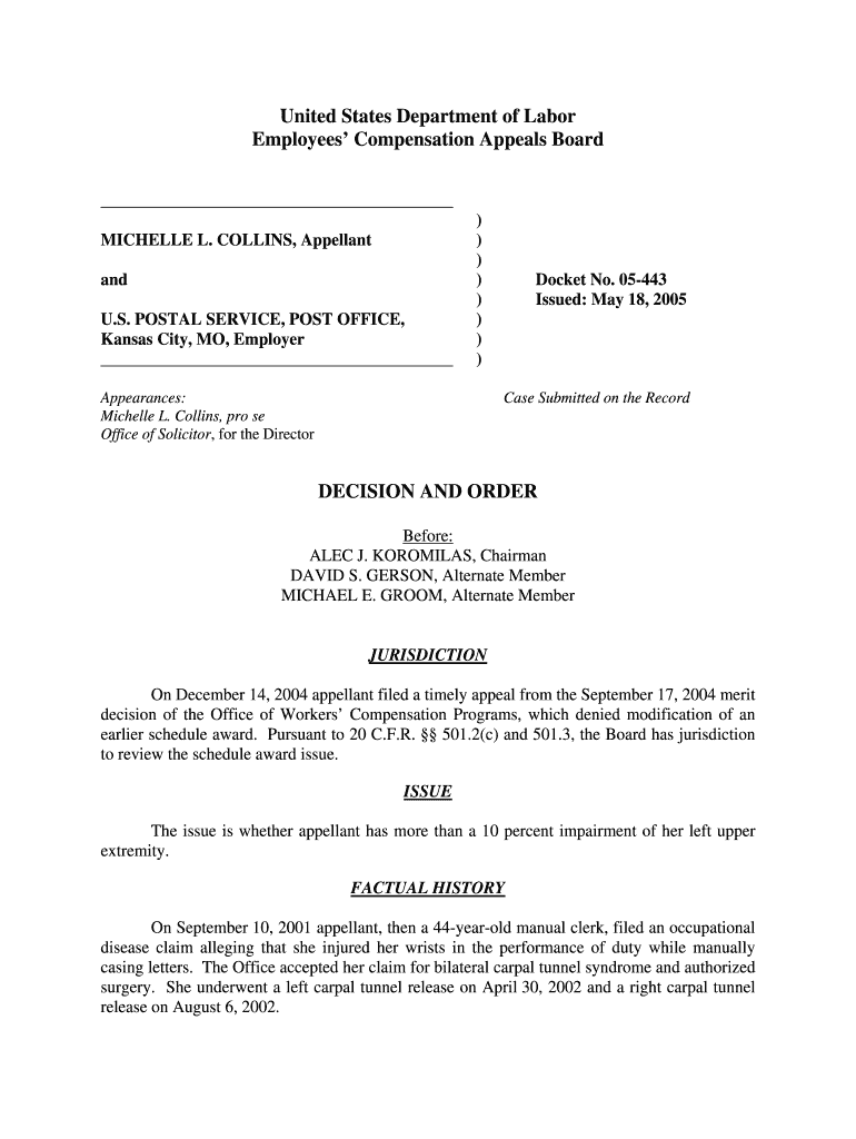 Email, fax, or share your collins appellant - dol form via URL. You can also download, print, or export forms to your preferred cloud storage service.