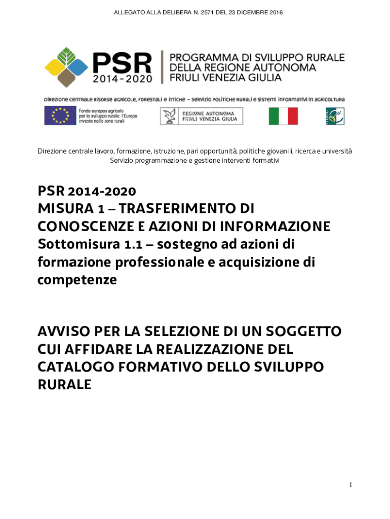 ALLEGATION ALL DELIVER N. 2571 DEL 23 DECEMBER 2016Direzione central favor, formation one, studio né, part opp port unit, PO political Giovanni, ricer ca e university Servillo prrogrammazioone e