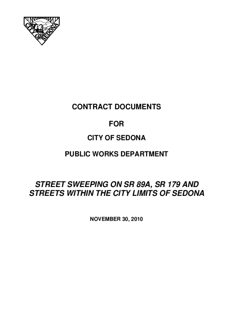 CONTRACT DOCUMENTS FOR CITY OF SEDNA PUBLIC WORKS DEPARTMENTSTREET SWEEPING ON SR 89A, SR 179 AND STREETS WITHIN THE CITY LIMITS OF SEDNA NOVEMBER 30, 2010CITY OF SEDNA STREET SWEEPING ON SR 89A,