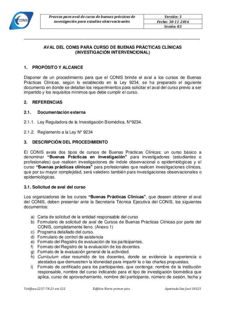 Process para naval DE curs ode Buena practices DE investigation para studios observacionalesVersin: 3 Tech: 30112016 Resin: 85___ NAVAL DEL CONES PARA CURS ODE BUE NAS PRACTICES CLINICAL (INVESTIGATION