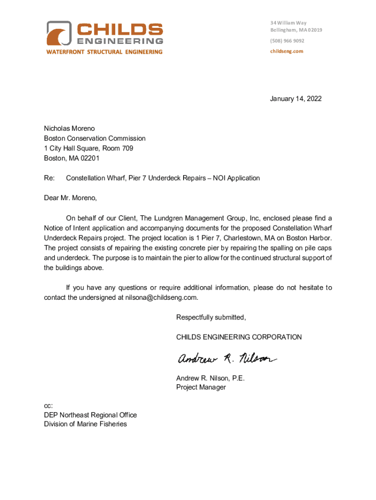 34 William Way Bellingham, MA 02019 ×508× 966 9092 children.com January 14, 2022Nicholas Moreno Boston Conservation Commission 1 City Hall Square, Room 709 Boston, MA 02201 Re:Constellation Wharf,