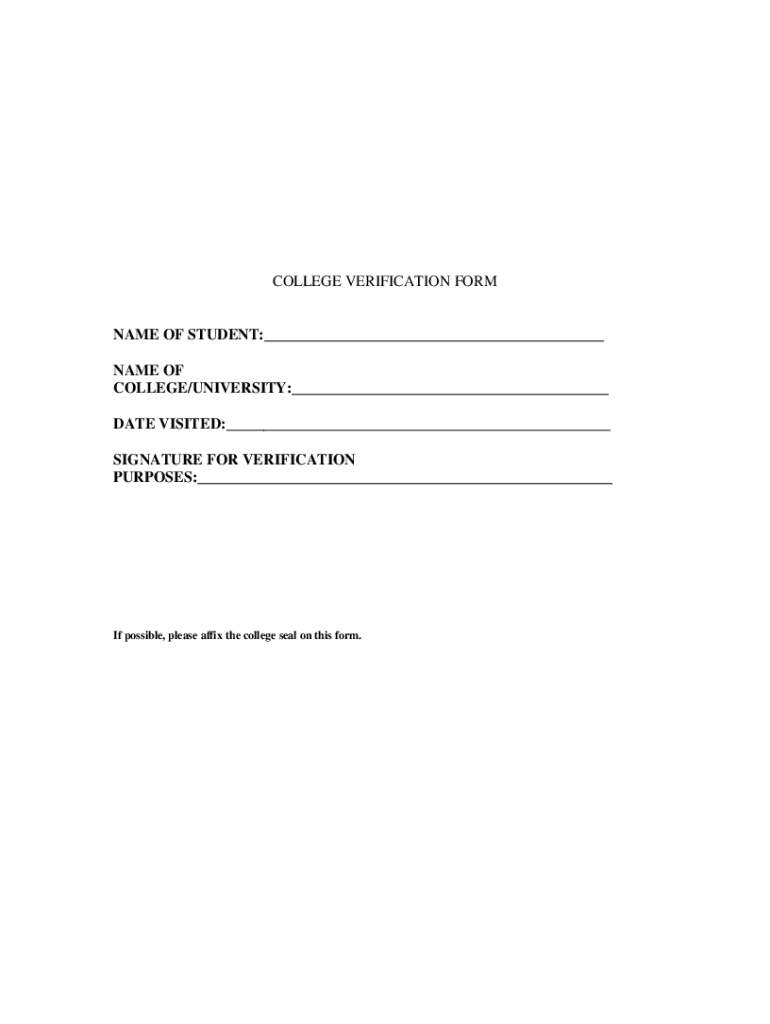COLLEGE VERIFICATION FORENAME OF STUDENT:___ NAME OF COLLEGE×UNIVERSITY:___ DATE VISITED:___ SIGNATURE FOR VERIFICATION PURPOSES:___If possible, please affix the college seal on this form.