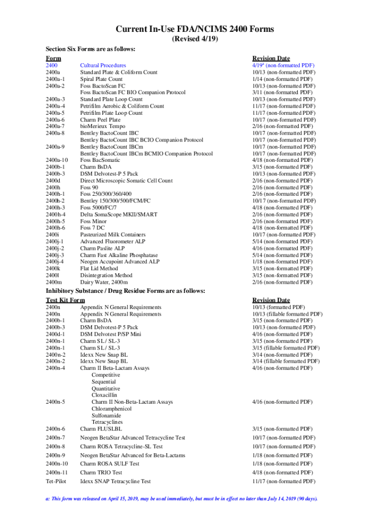 Current Infuse FDA×NCIS 2400 Forms (Revised 4×19) Section Six Forms are as follows: Form 2400 2400a 2400a1 2400a2 2400a3 2400a4 2400a5 2400a6 2400a7 2400a8 2400a9 2400a10 2400b1 2400b3 2400d 2400h