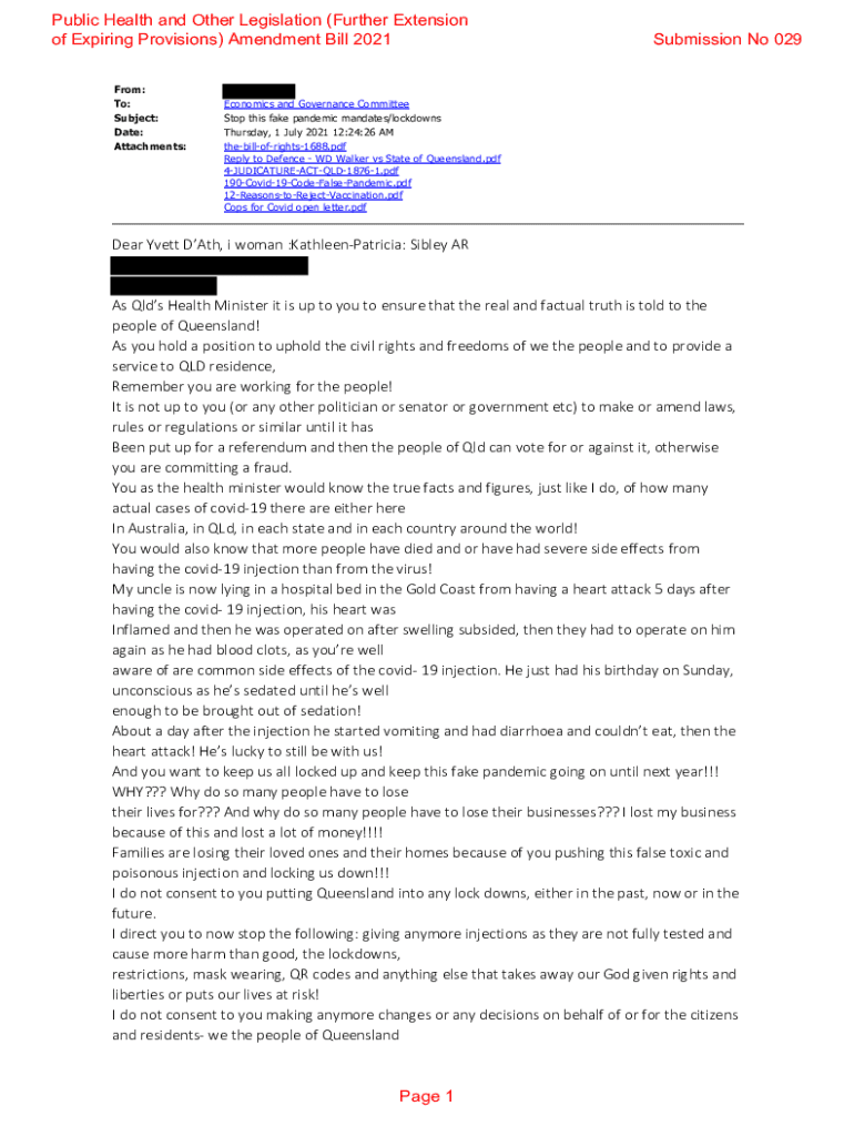 Public Health and Other Legislation (Further Extension of Expiring Provisions) Amendment Bill 2021 From: To: Subject: Date: Attachments:Submission No 029Economics and Governance Committee Stop this