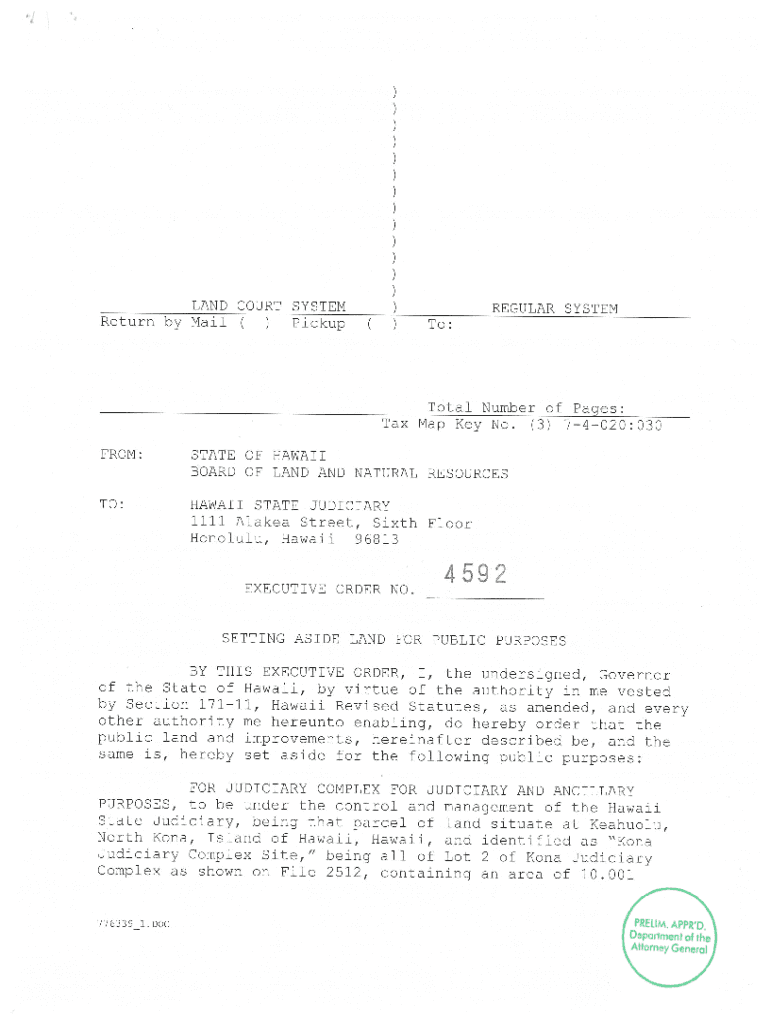 LAND COURT SYSTEM Return by Mail C) Pickup())REGULAR SYSTEM To:Total Number of Pages: Tax Map Key No. (3× 74020:030 FROM:STATE OF HAWAII BOARD OF LAND AND NATURAL RESOURCE STO:HAWAII STATE JUDICIARY
