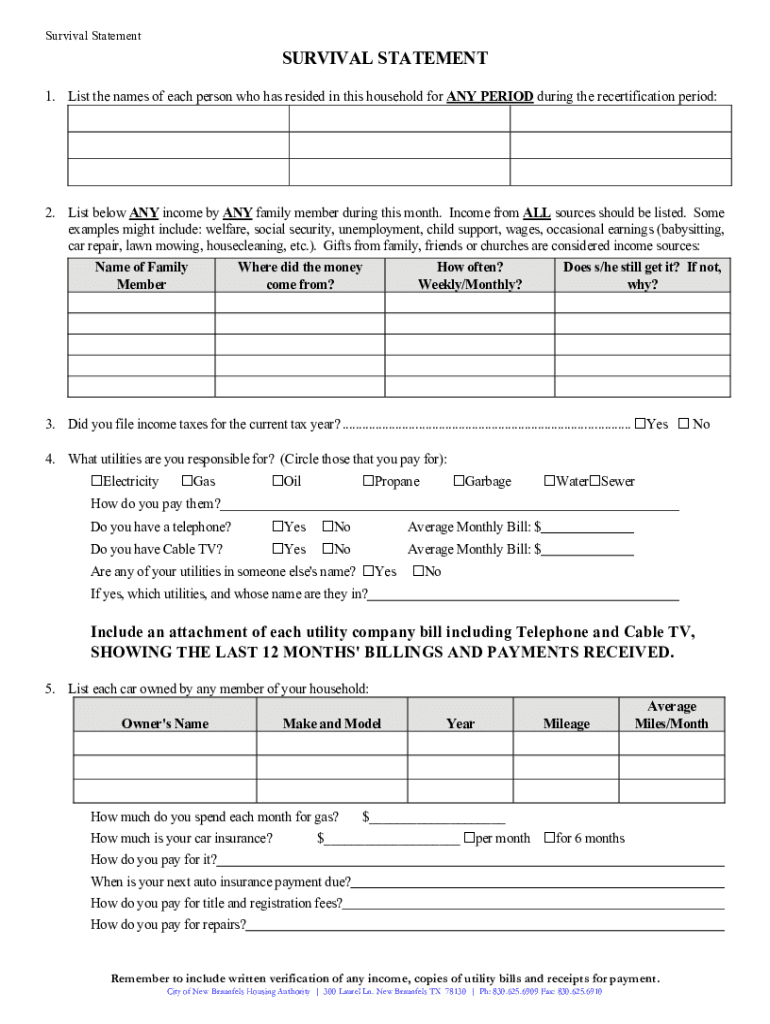 Survival StatementSURVIVAL STATEMENT 1. List the names of each person who has resided in this household for ANY PERIOD during the recertification period:2. List below ANY income by ANY family member