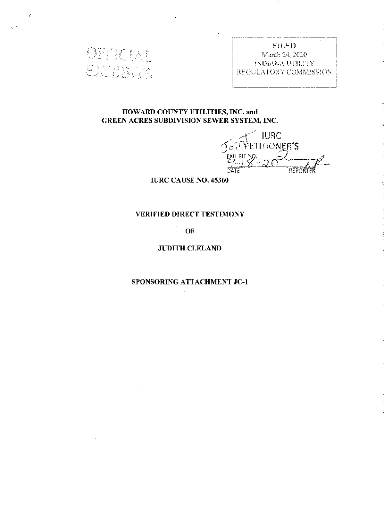 FILEDOFFICLALMarch 24, 2020 INDIANA UTILITY REGULATORY Commissioner.,.l._;HOWARD COUNTY UTILITIES, INC. and GREEN ACRES SUBDIVISION SEWER SYSTEM, INC., f\'o, IRC 0p ELITE ONE R\'S.r9Q,.4;it Q, Oregon(fan