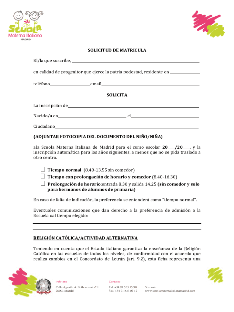 SOLICITED DE MATRICULATE El×la Que subscribe, ___en Caliban de progenitor Que emerge lap atria pedestal, residents en ___ Teflon___email___ Solicitor inscription de___Nacido×an en___ El___ Ciudad___