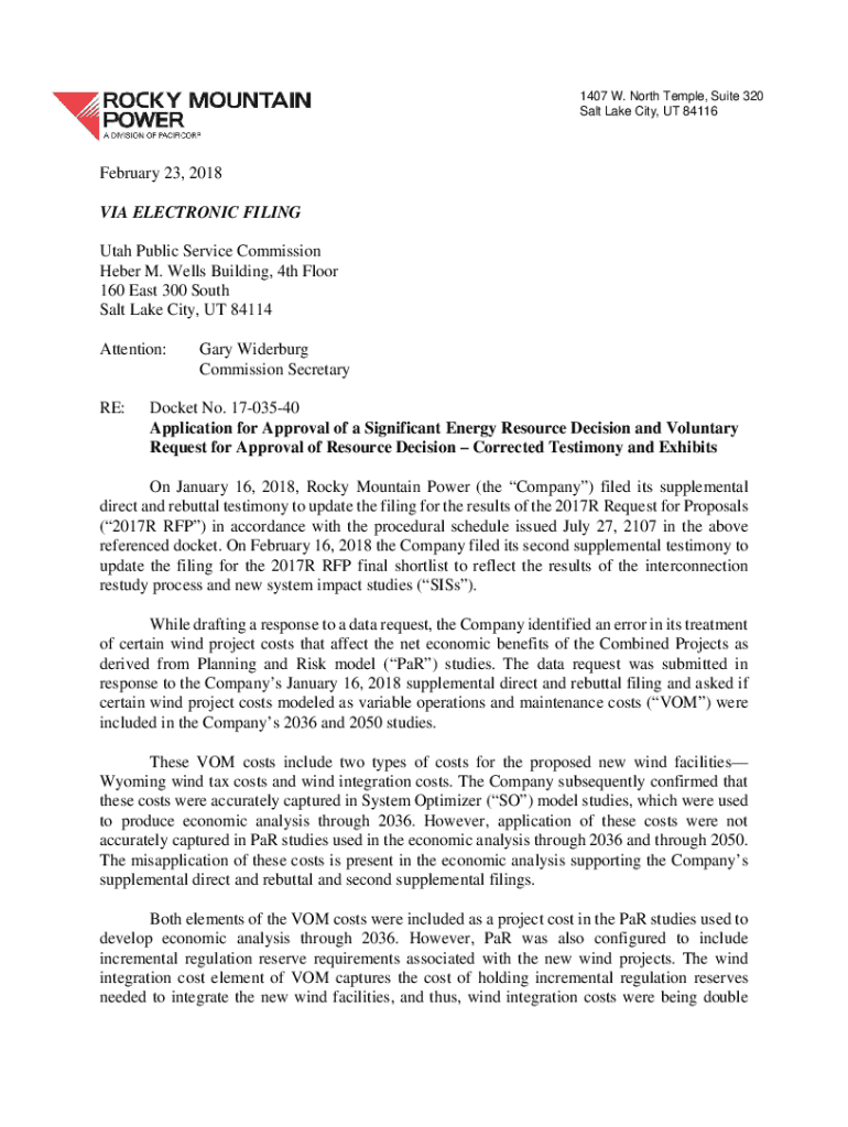 1407 W. North Temple, Suite 320 Salt Lake City, UT 84116February 23, 2018 VIA ELECTRONIC FILING Utah Public Service Commission Weber M. Wells Building, 4th Floor 160 East 300 South Salt Lake City,