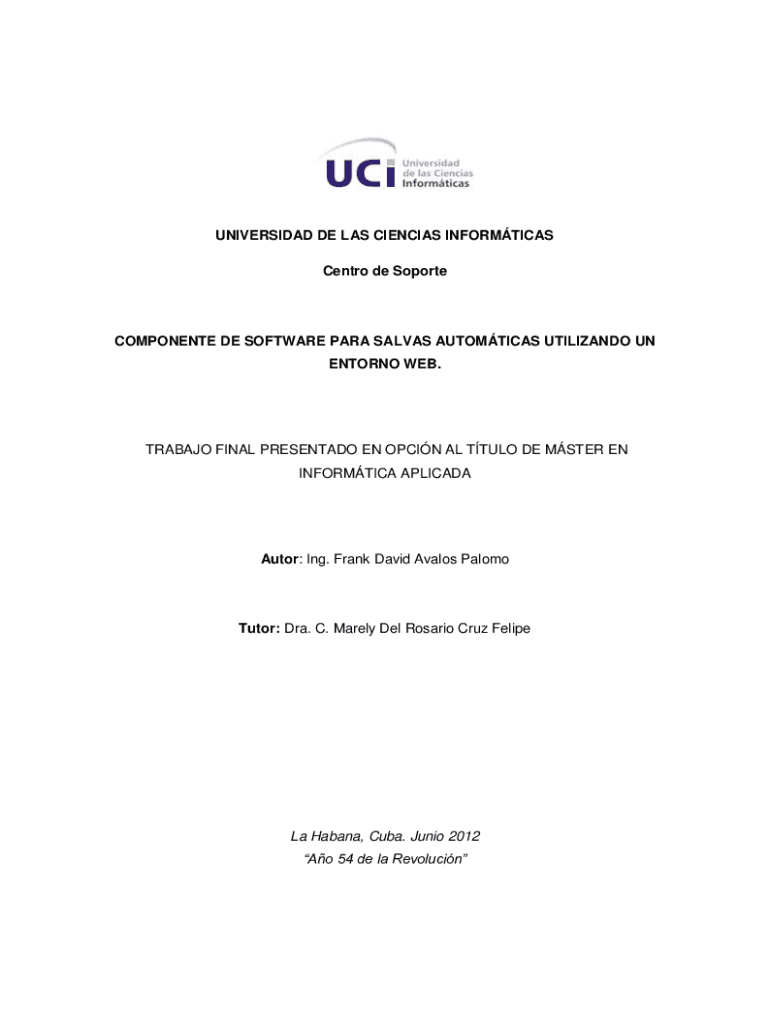 UNIVERSITY DE LAS AGENCIES INFORMATICS CENTR de SoporteCOMPONENTE DE SOFTWARE PARA SALVOS AUTOMATICS UTILIZED UN eToro WEB.TRIBAL FINAL PRESENTED EN OPEN AL TTU LO DE MASTER EN INFORMATICA APLICADAAutor: