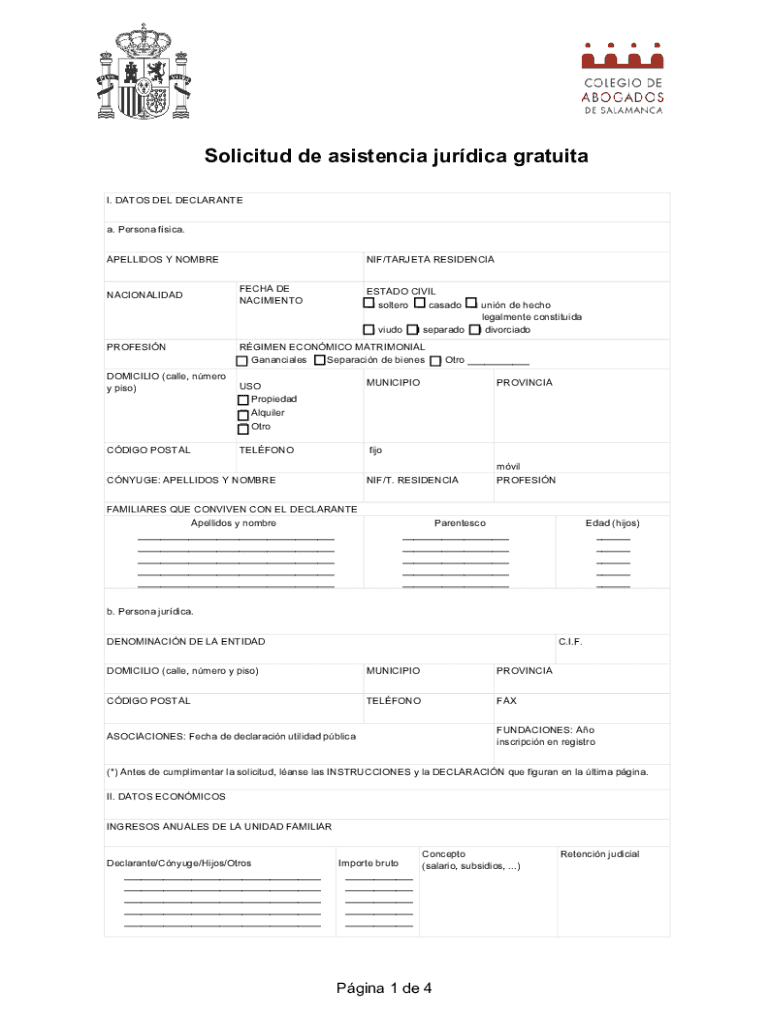 Solicited de asistencia juridical gratuity I. DATES DEL DECLARABLE a. Persona FICA. SPELLINGS Y HOMBRE NACIONALIDADPROFESIN DOMICILE (called, Nero y peso×CDI GO POSTAL NIF×TARGET RESIDENCE FEC HA