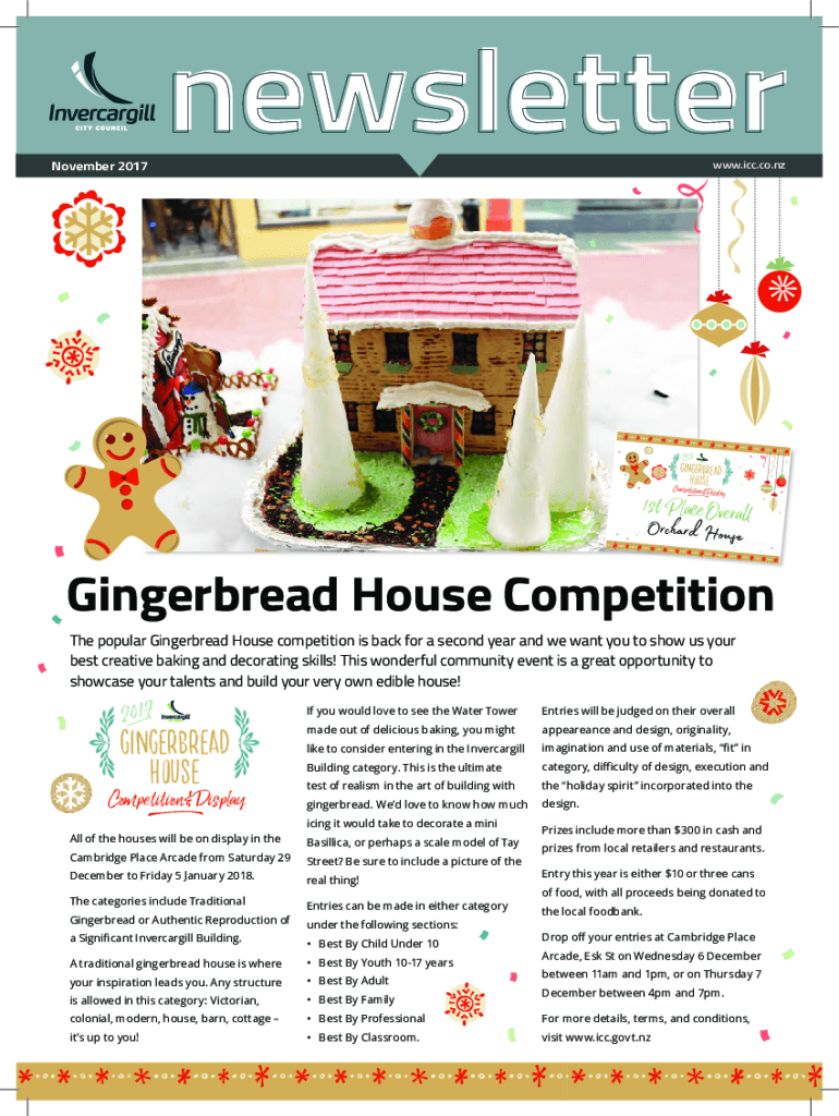 November 2017newsletter www.icc.co.nz20q16Gingerbread House Competition & Display n1st Place Overall Or chard House___________________Gingerbread House Competition 20q16Gingerbread House Competition
