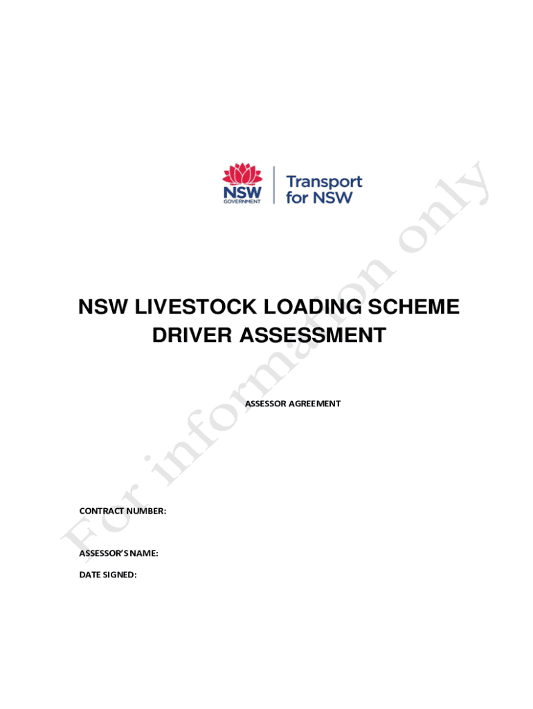 NSW LIVESTOCK LOADING SCHEME DRIVER ASSESSMENTASSESSOR AGREEMENTCONTRACT NUMBER:ASSESSORS NAME: DATE SIGNED:CONTENTS 12345DEFINITIONS AND INTERPRETATION51.1Definitions51.2Interpretation81.3Precedence