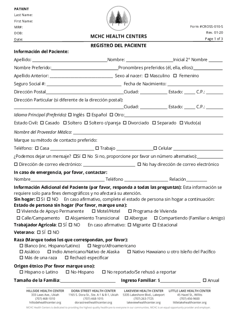 Get the free REGISTRO DEL PACIENTE - Mendocino Community Health ...