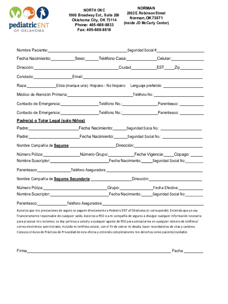 NORTH OK 9900 Broadway Ext., Suite 200 Oklahoma City, OK 73114 Phone: 4056088833 Fax: 4056088818NORMAN 2002 E. Robinson Street Norman, OK 73071 (inside JD McCarty Center×Hombre Patients:Sciuridae