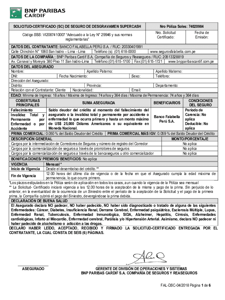 Get the free solicitud-certificado (sc) de seguro de desgravamen supercash