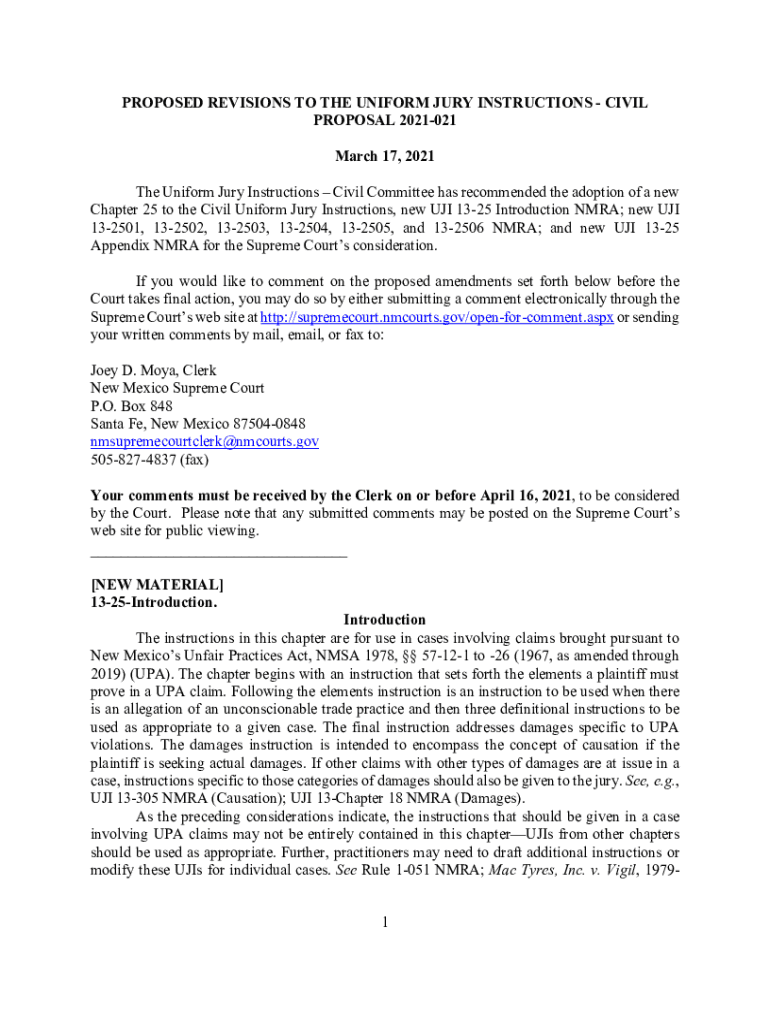 PROPOSED REVISIONS TO THE UNIFORM JURY INSTRUCTIONS CIVIL PROPOSAL 2021021 March 17, 2021, The Uniform Jury Instructions Civil Committee has recommended the adoption of a new Chapter 25 to the Civil