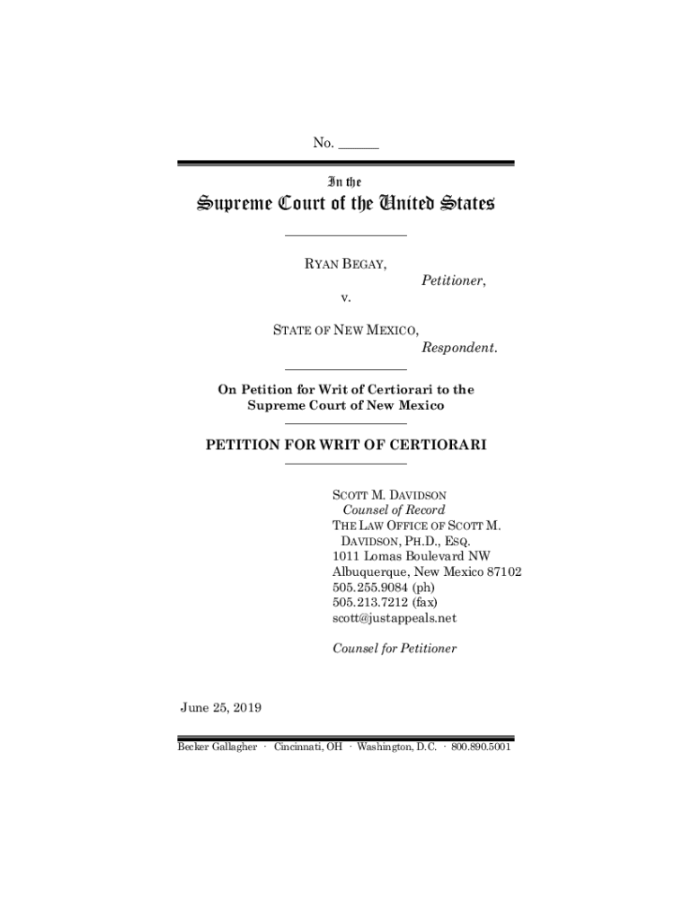 No. ___ In supreme Court of the United States ___ RYAN BEGAN, v. STATE OF NEW MEXICO, ___Petitioner, Respondent. On Petition for Writ of Certiorari to the Supreme Court of New Mexico___PETITION FOR