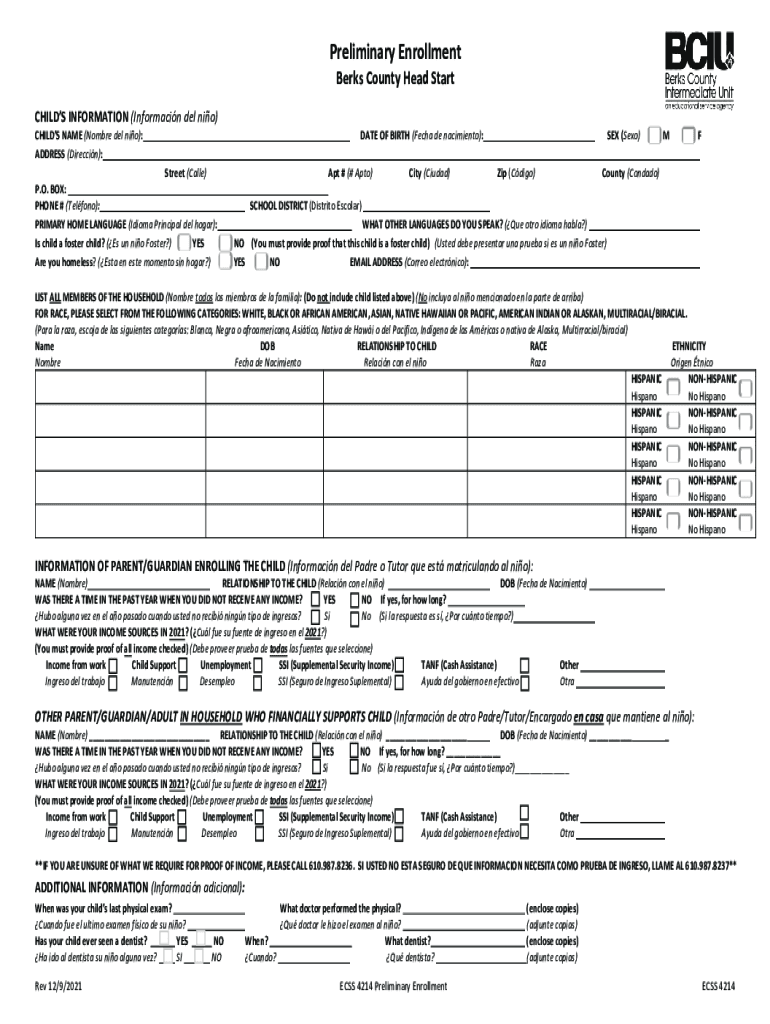 BERKS COUNTY HEAD Starter Applicant: We are excited that you have considered Berks County Head Start for your preschool child! Head Start is designed to serve 3, 4 and 5-year-old children who come