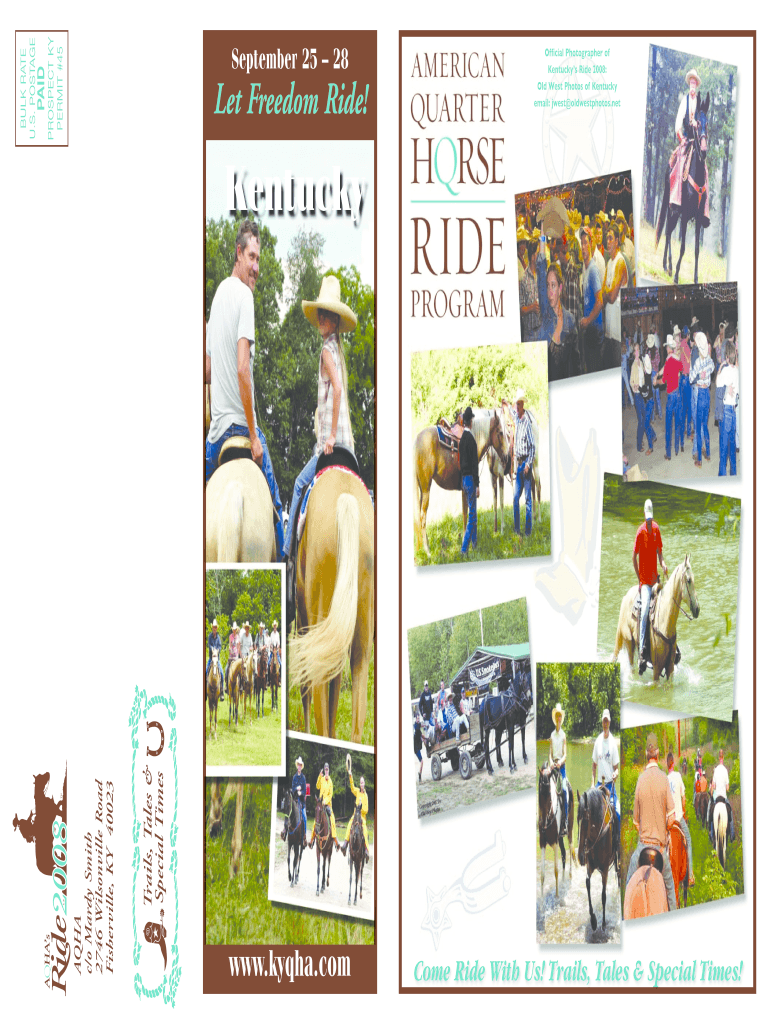 Let Freedom Ride! B Trails, Tales & Special Times O AQUA c/o Mary Smith 2746 Wilsonville Road Asheville, KY 40023 PAID PROSPECT KY PERMIT #45 BULK RATE U.S. POSTAGE September 25 28 www.kyqha.com Official