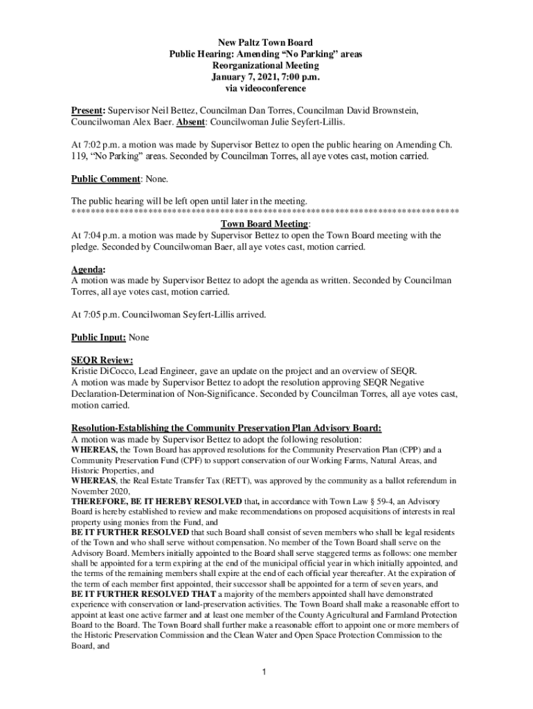 Get the free New Paltz Town Board Public Hearing: Amending No Parking ...